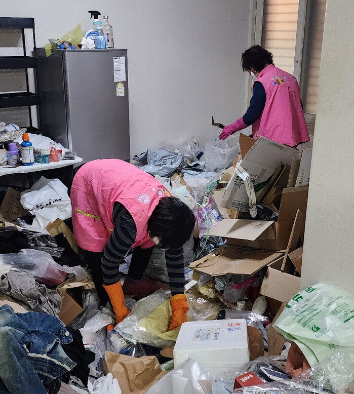 | ▲ 저장강박가구 청소 모습. (사진=금천구청 제공) |