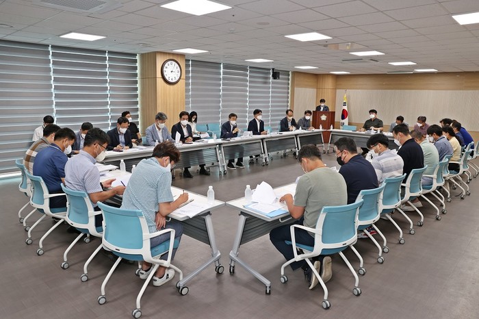 | ▲ 해남군의회가 해남군, 군 관내 건축사무소, 측량설계사무소 관계자들을 대상으로 지난 18일(목) 해남군의회 주민소통실(1층)에서 건축·측량설계 민원처리 개선 및 발전방안 모색을 위한 간담회를 진행하고 있다. / 해남군의회 제공 |