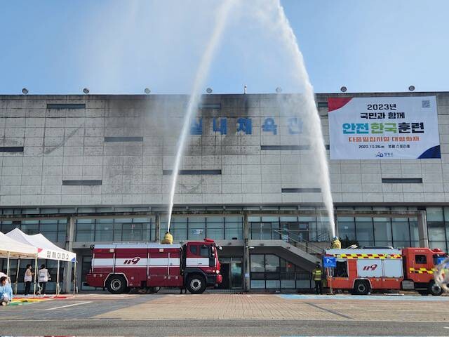 올해 훈련은 ‘전기사고로 인한 다중밀집시설 대형화재’라는 가상 상황을 설정해 영광군 강종만 군수 주재 하에 재난안전대책본부 운영에 대한 토론훈련과 영광군 13개 협업기능별 실무반과 영광소방서, 영광경찰서 등 9개 관계기관·단체가 함께 참여한 현장훈련을 동시에 실시함으로써 실제 상황과 같은 지휘체계를 연출했다.