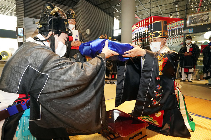 서울 동대문구는 지난 23일 한 해 농사의 풍년을 기원하는 선농대제 제례봉행을 선농단에서 열었다. 제례봉행은 전폐례·초헌례·아헌례·종헌례·분헌례·음복례·망요례 등의 절차가 차례로 이어진다. 사진은 이날 선농대제 전향례가 진행되고 있는 모습. (사진제공=동대문구청)