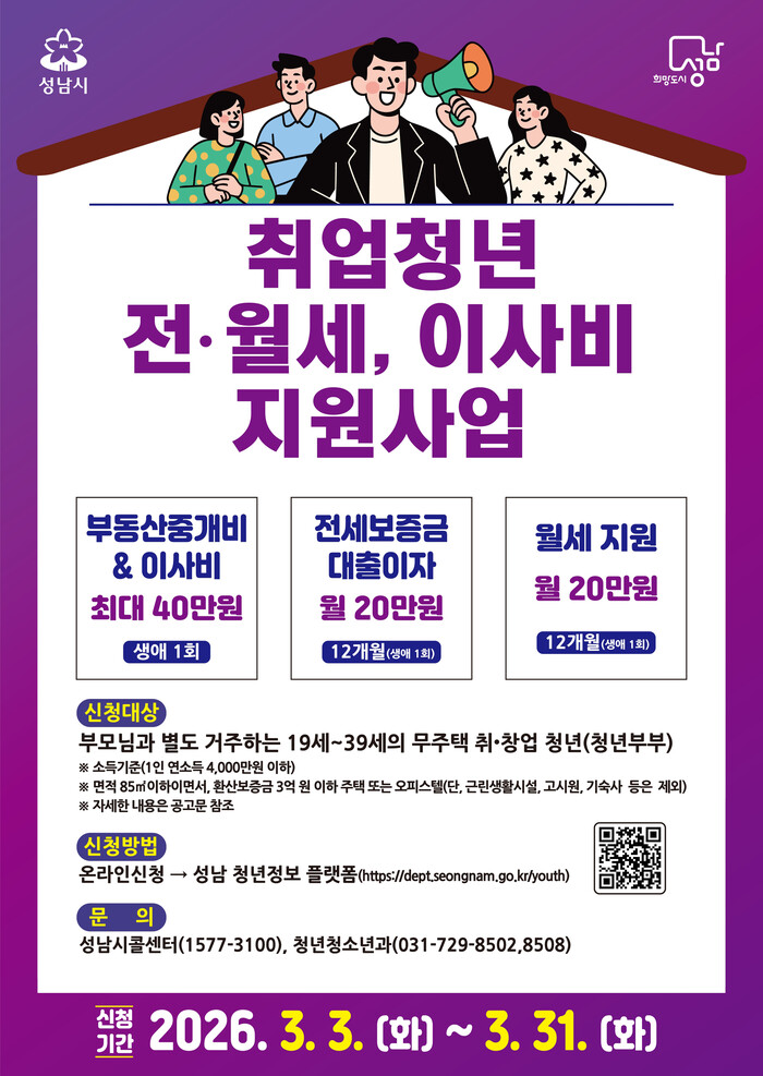 | ▲ 청년청소년과-성남시 ‘취업 청년 전월세·이사비 지원 사업’ 안내 포스터. |