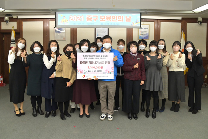 이날 행사에서는 표창장 수여 및 격려품 전달 외에도 2021년 중구 보육 10대 뉴스 상영과 어린이집연합회에서 준비한 성금 전달식도 진행됐다.