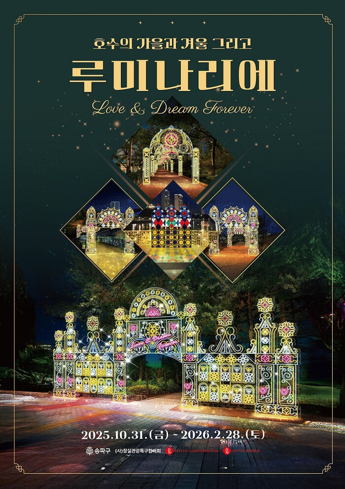 2022년 시작한 ‘루미나리에 축제’는 매년 석촌호수에 다채로운 빛 조형물을 설치하고 빛으로 물든 산책로를 조성해 빛의 향연을 펼치고 있으며, 2026년 2월28일까지 진행된다.