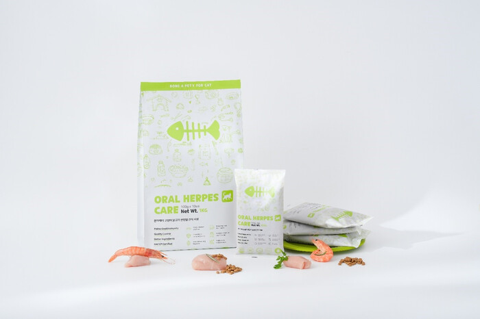 ‘오랄앤허피스케어’는 고양이 구내염 예방과 허피스 바이러스 관련 면역 관리에 초점을 둔 기능성 사료로, 일부 동물병원에도 공급되고 있으며, 닭고기를 주원료로 사용했다.