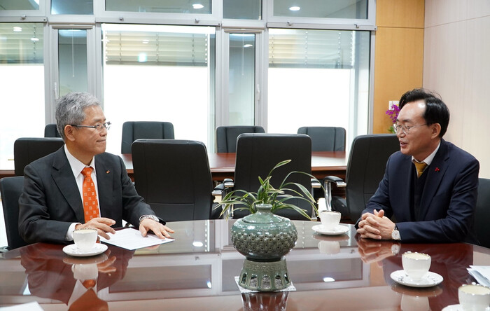 | ▲ 나주시가 침체한 민생경제 활성화를 위해 빛가람 혁신도시 이전공공기관과 협력을 강화하고 있다. 윤병태 나주시장이 연초 한국전력 본사 사옥을 방문해 김동철 한전사장과 간담회를 갖고 있다. (출처=나주시) |