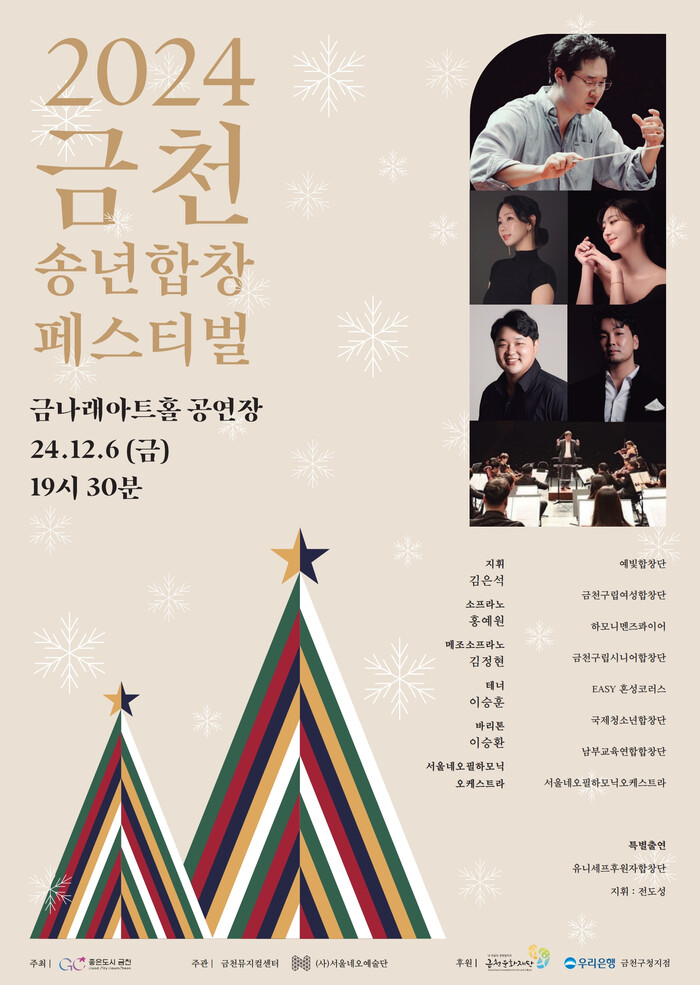 유성훈 구청장은 “송년 합창 페스티벌을 통해 지역의 합창 예술이 활발하게 발전해 우리 구가 서남권의 합창 문화 중심도시로 자리 잡을 수 있길 바란다”며, “앞으로도 금천의 문화 예술 발전을 위해 주민들이 모두 참여해 즐길 수 있는 다양한 합창 예술 프로그램을 꾸준히 발굴하겠다”고 전했다.
