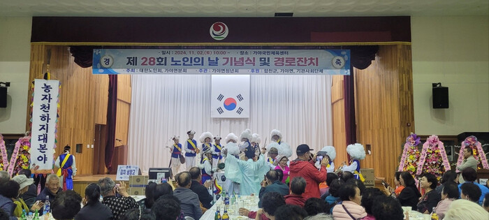 대한노인회 가야면분회(회장 김상원)가 주최하고 가야면 청년회(회장 하세철)가 주관한 이번 행사는 노인의 날 기념식, 경로잔치, 문화공연 순으로 진행됐으며, 기념식에서는 지역 노인복지 증진과 발전에 기여한 유공자 4명에 대한 포상이 수여됐다.
