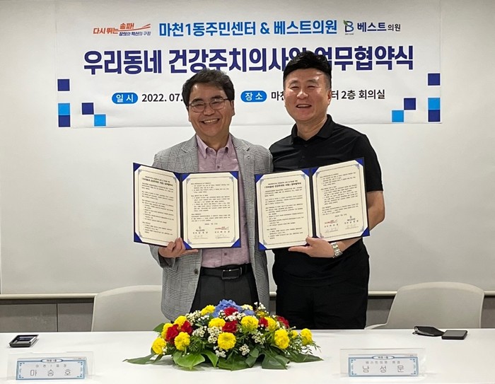이번 사업을 위해 마천1동 주민센터는 베스트의원과 업무협약을 체결했다.