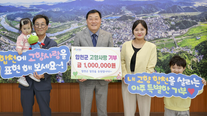 이현민씨는 시민일보 이영수 기자의 자녀다. 이날 기탁식에는 아버지 이영수 기자, 자녀 최연우(5세)군, 최수아(2세)양이 함께 참석해 기부를 통해 가족의 합천 사랑을 실천하여 훈훈함을 자아냈다. 이현민씨는 아버지가 사시는 곳인 합천군의 발전에 보탬이 되고자 기부하게 됐다고 전했다.