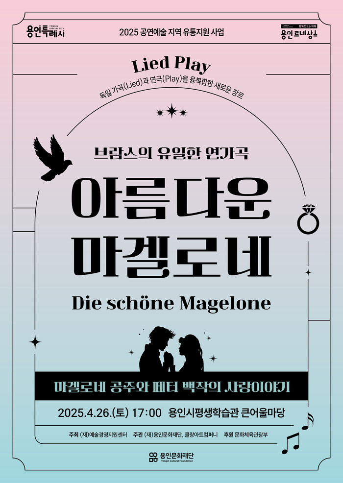[용인=오왕석 기자] 용인문화재단(이사장 이상일)은 융복합 클래식 공연 ‘아름다운 마겔로네’를 오는 4월 26일 오후 5시, 용인시평생학습관 큰어울마당에서 개최한다.