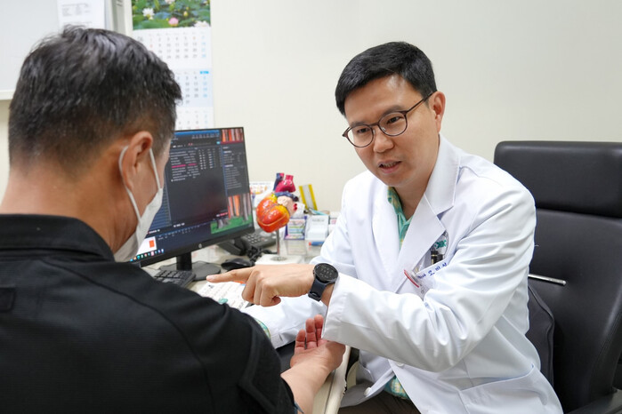 | ▲ 분당제생병원심장혈관내과오민석과장이환자에게설명하고있다. |