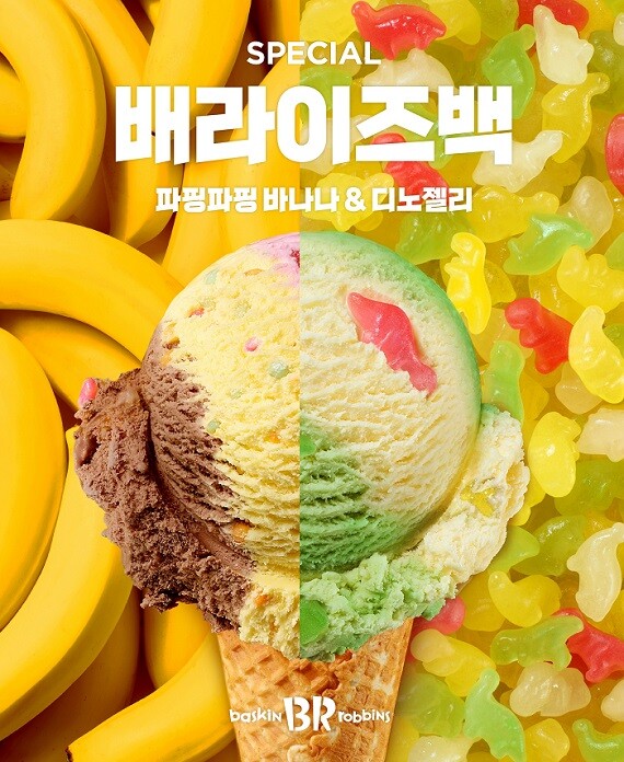 배스킨라빈스는 5월 가정의 달에 출시한 역대 인기 플레이버 중 공식 홈페이지와 SNS를 통해 재출시 요청이 꾸준히 이어진 ‘파핑파핑 바나나’와 ‘디노젤리’를 ‘배라이즈백 스페셜’ 제품으로 선정했다.