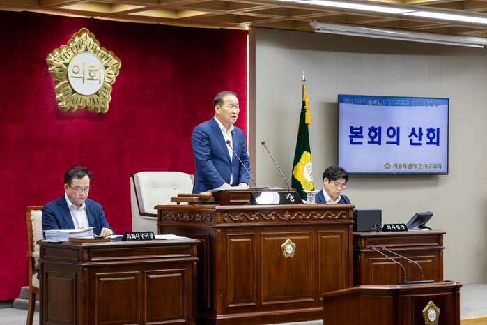| ▲ 최동철 의장이 제297회 제1차 정례회 제2차 본회의를 주재하고 있다. (사진=강서구의회 제공) |