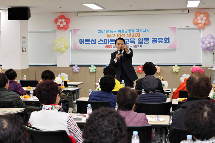 [인천=문찬식 기자] 인천 동구의 마을공동체 ‘동구여성빌리지'는 지난 25일 청본이룸터에서 ‘어르신 스마트폰 교육 성과공유회’를 개최했다고 밝혔다.