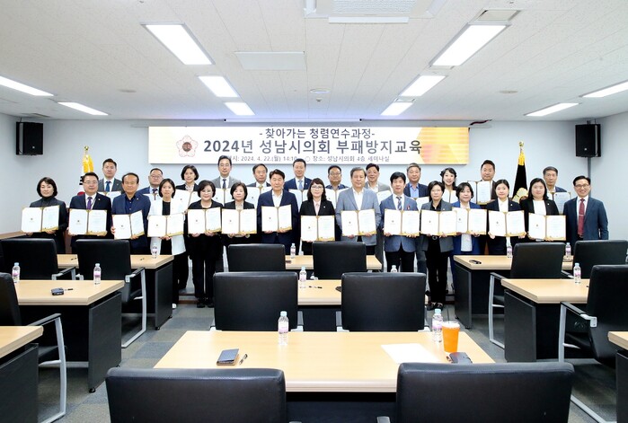 [성남=오왕석 기자] 성남시의회(의장 이덕수)에서는 지난 4월 22일 의회 4층 세미나실에서 성남시의회 의원을 대상으로 부패방지교육을 하였다.