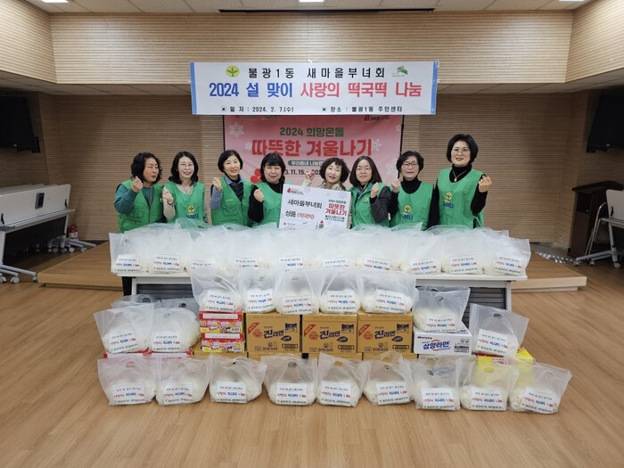 불광1동 새마을부녀회는 회원들의 마음을 모아 저소득층 이웃이 설 명절을 따뜻하게 보낼 수 있게 떡국떡 100kg과 라면 등을 전달했다.