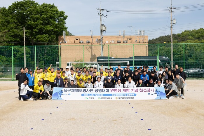 [시민일보 = 이대우 기자] 서울 은평구(구청장 김미경)는 육군 제56보병사단과 함께 지난달 28일 56사단 공병대대에서 ‘육군제56보병사단 공병대대 연병장 개방기념 친선경기’를 개최했다고 밝혔다.