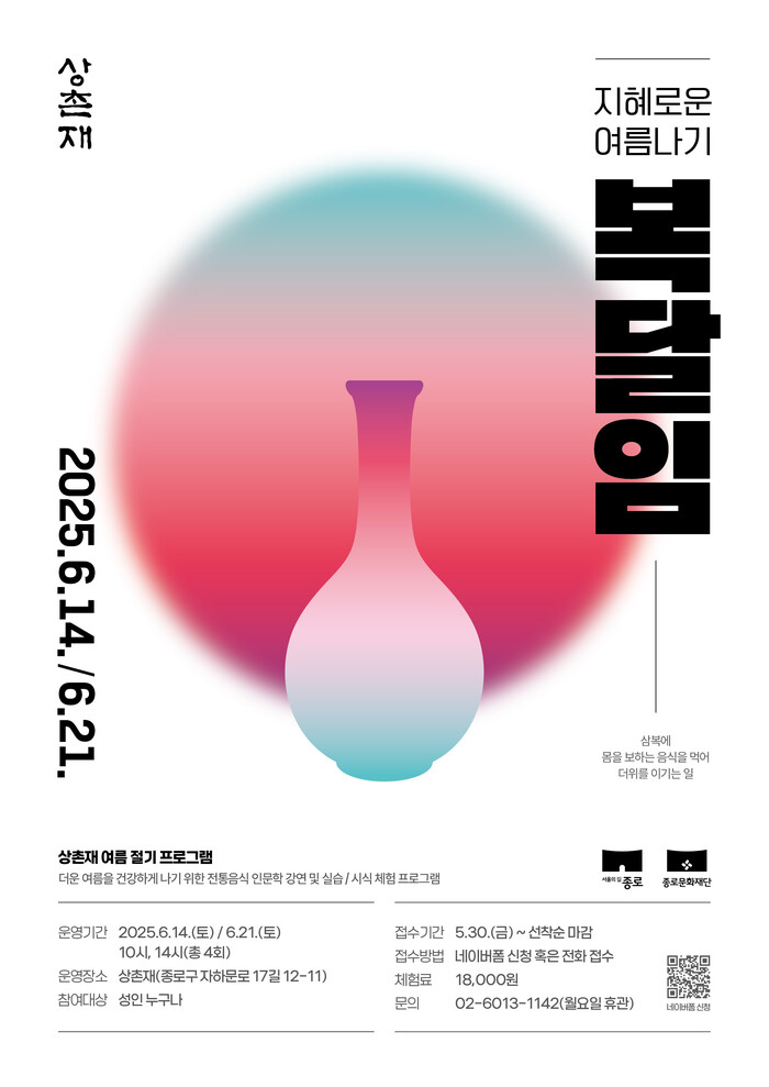신청 링크(QR코드)와 자세한 일정은 종로문화재단 SNS 및 상촌재 인스타그램에서 확인 가능하다.