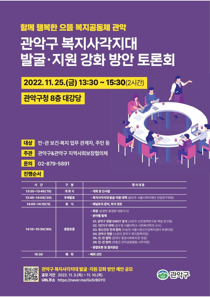 | ▲ '관악구 복지사각지대 발굴 및 지원 강화 방안 토론회' 홍보 포스터. (사진제공=관악구청) |