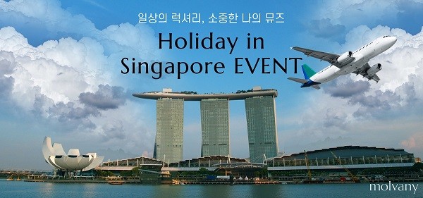 몰바니 측에 따르면 30만원 이상 구매 시 자동 응모되며 당첨자에게는 싱가포르 2인 왕복 항공권과 싱가포르 마리나베이샌즈 호텔 숙박권을 제공한다.