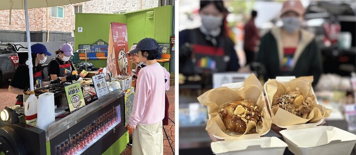 | ▲ (좌)열차매대, (우)꽁꽁이네 타코야끼 |