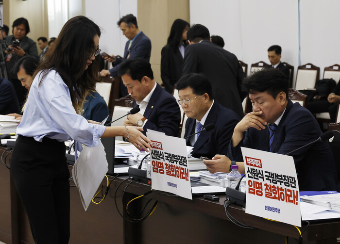 윤재옥 국민의힘 원내대표는 이날 오전 국정감사 대책외의에서 "어제 홍익표 대표와 만남을 가졌다. 우선 국회 회의장 분위기를 개선해야 된다는 데 공감대를 형성했다"며 "회의장과 상임위장에 피켓 소지하고 부착하는 행위를 하지 않기로, 그리고 본회의장에서 고성이나 야유를 하지 않는 것도 합의했다"고 밝혔다.