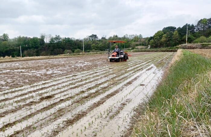 지곡면에서 매년 기능성 품종 조기벼 재배를 하고 있는 박철우씨는 이날 덕암마을 앞들 논에 첫 모내기를 실시했다.