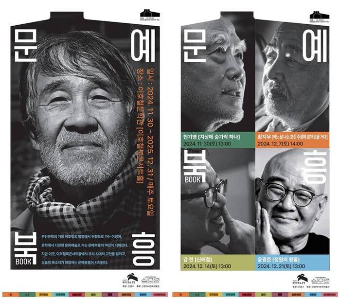 ‘문예북흥’은 문학 작가, 음악, 사진, 건축 등 다양한 분야의 유명 인사들을 초청해 책을 통한 관객과 대화하는 문화예술 강연이다. 프로그램 첫날은 소설가 현기영이 ‘지상에서 숟가락 하나 제주’ 저서를 가지고 제주에서의 어린 시절을 회상하며 강연을 펼치고, 제주를 노래하는 포크 음악가 강아솔의 축하공연이 열린다.