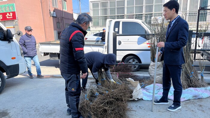 밀원수는 헛개나무(2년생) 4,500본, 쉬나무(2년생) 2,200본 2종본을 보급했다. 두 종류 모두 산림청에서 지정한 대표적인 밀원수이며, 다른 꽃나무에 비해 꿀 생산량이 많아 농가에 큰 도움이 될 것으로 기대한다.