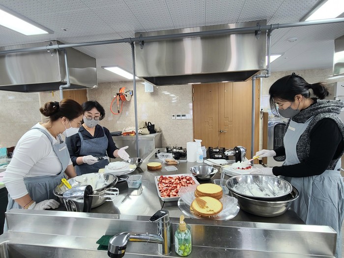 이날 프로그램은 평생학습관 수려한 수랏간에서 자원봉사자 2명이 참여해 베이킹 강사의 지도를 받으며 직접 케이크를 만들어 관내 출산가정 5가구의 자택으로 축하카드와 같이 전달했다.
