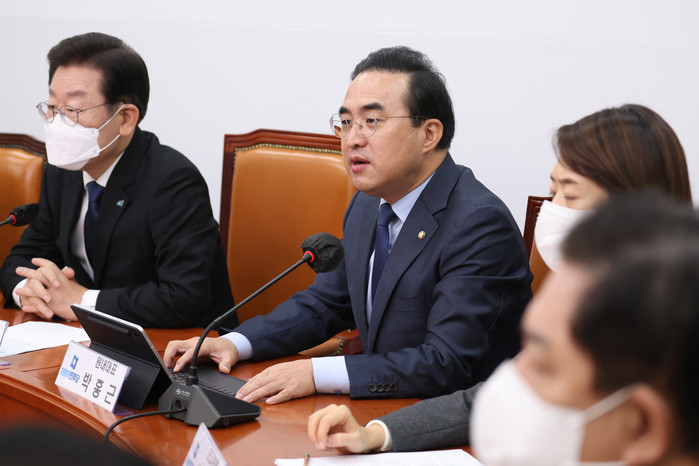 박홍근 원내대표는 이날 국회에서 열린 최고위원회의에서 정진상 실장 구속에 대해 "본질은 윤석열 정권 차원의 이재명 죽이기"라며 이같이 주장했다.