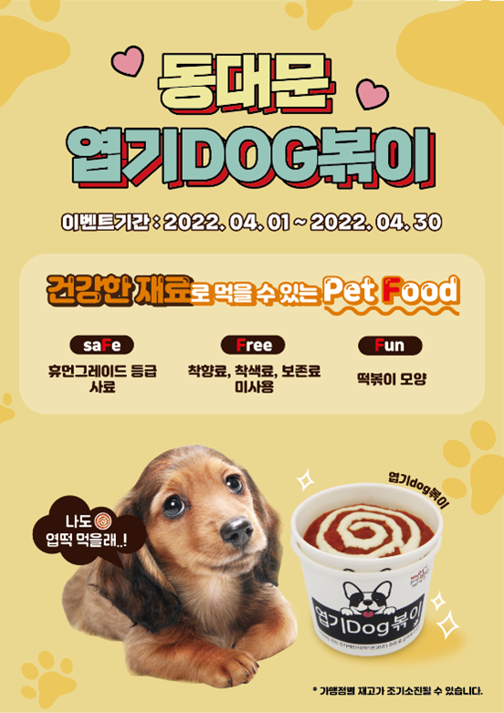 [시민일보 = 이승준 기자] 동대문엽기떡볶이 (주)핫시즈너에서 반려견을 위한 펫푸드 ‘엽기Dog볶이’ 메뉴를 4월 한달 간 판매한다.