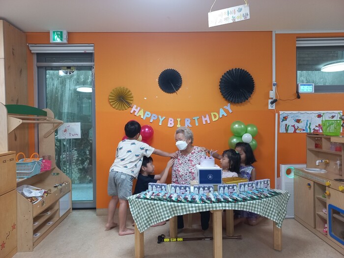 이에 지난 23일에도 8월 생신인 어르신을 초청, 원아들이 선보이는 사랑스러운 축하공연과 선물 전달 등의 시간을 가졌다.
