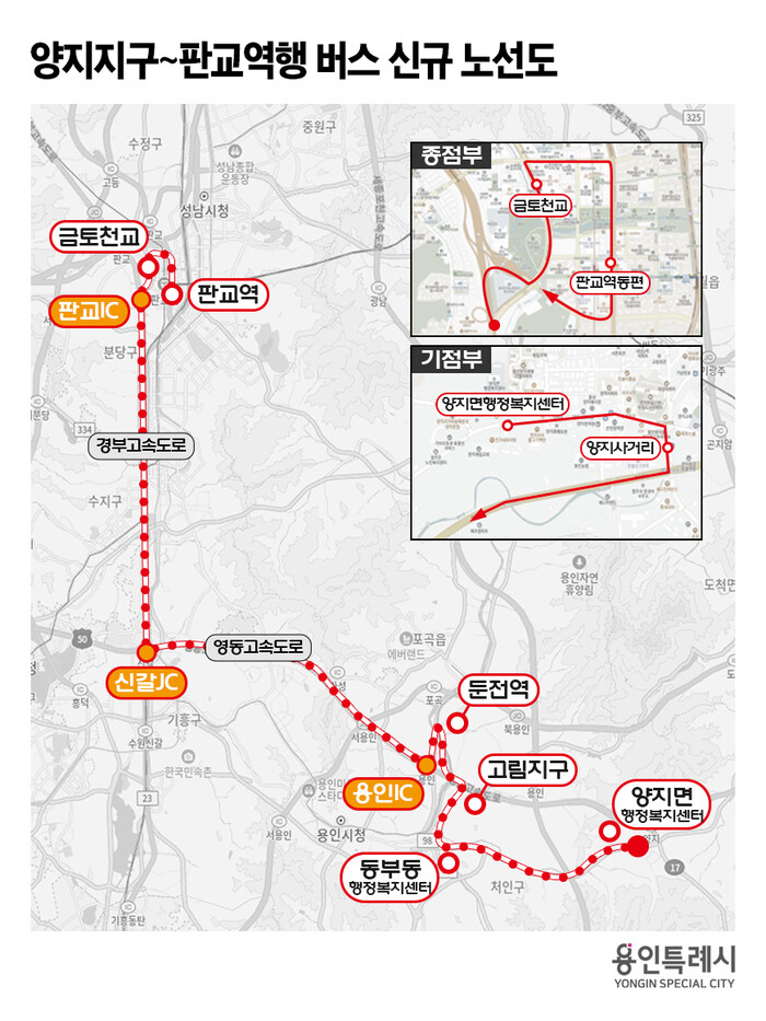 | ▲ 용인특례시 양지지구~판교역행 버스 신규 노선도 |