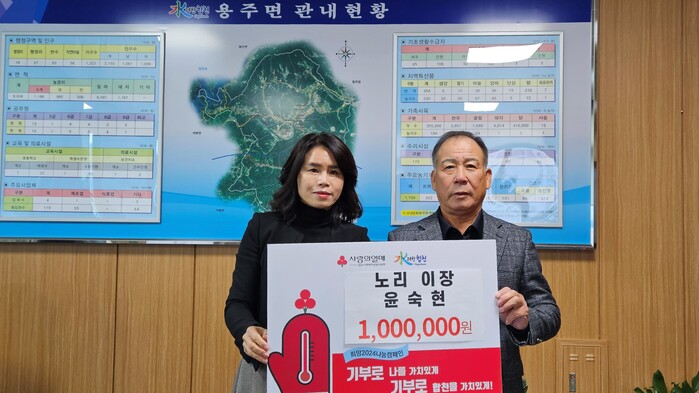 김필선 용주면장은 “매년 이렇게 잊지 않고 지역의 어려운 이웃을 위한 따뜻한 관심과 지원에 감사드리며, 기탁하신 성금은 지역 내 어려운 이웃들에게 잘 전달해 모든 면민들이 행복한 용주면이 되도록 노력하겠다”고 말했다.