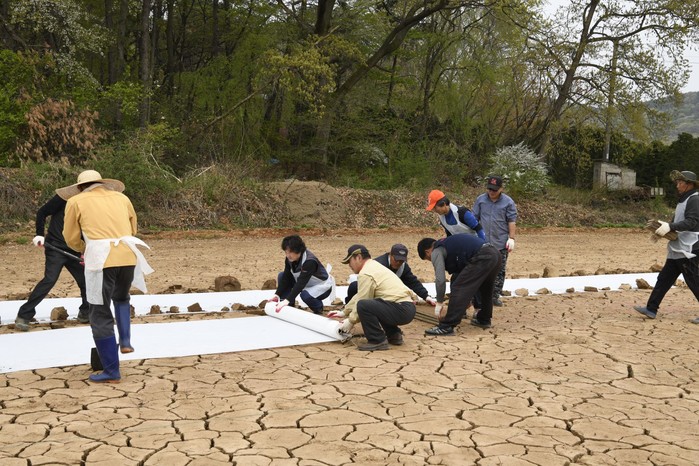 경기 수원시 금곡동 주민자치회는 2일 권선구 당수로 59 일원 농가를 방문해 볍씨 모판작업 일손돕기 활동을 펼쳤다. 이날 봉사활동은 농가 인구감소와 고령화 및 코로나19 여파로 부족한 영농인력을 지원하기 위해 진행됐다. 사진은 주민자치위원들이 추청 700판, 정다미 800판 등 총 1500판의 모판을 만들고 있는 모습. (사진제공=수원시청)