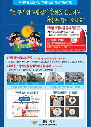 조형용 소방서장은 “추석 기간 안전하고 풍요로운 명절이 되길 바란다”며 “우리 가족의 안전을 위한 주택용 소방시설 설치는 선택이 아닌 필수라는 걸 기억해주길 바란다”고 전했다.