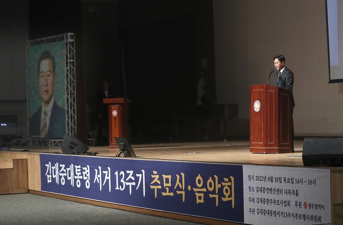 강 시장은 18일 김대중컨벤션센터 1층 다목적홀에서 열린 ‘김대중 대통령 서거 13주기 추모식 및 추모음악회’에서 추모사를 통해 이 같이 밝혔다.