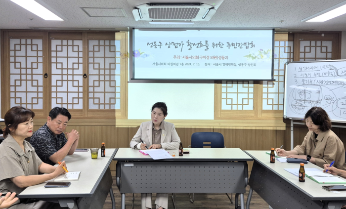 [시민일보 = 이대우 기자] 구미경 서울시의회 의원(성동 제2선거구)가 최근 서울시의회 의원회관 7층에서 성동구 상점가 활성화를 위한 간담회를 열고 상점가 현안에 대한 민원 사안에 대한 논의를 진행했다.