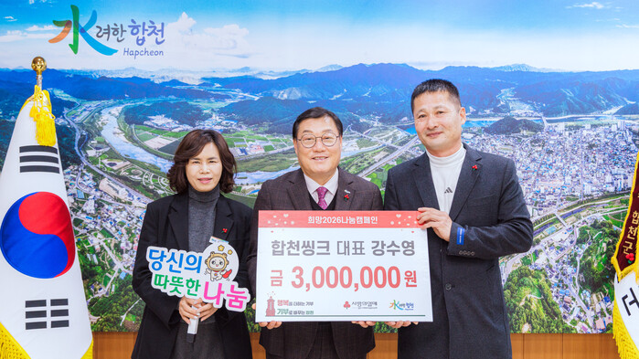 김윤철 합천군수는 “매년 변함없이 나눔의 가치를 실천해주셔서 깊은 감사의 말씀을 드리며, 기탁받은 성금은 꼭 필요한 이웃에게 전달될 수 있도록 하겠다”고 감사의 마음을 전했다.