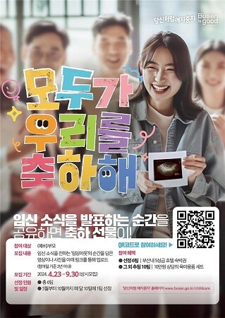 특히, 캠페인을 통해 선정된 1명의 영상 또는 사진을 재가공해 시 공식 온‧오프라인 채널을 통해 다시 시민에게 공유해, 부산 시민 전체가 임신을 축하하는 긍정적 분위기를 조성할 계획이다.