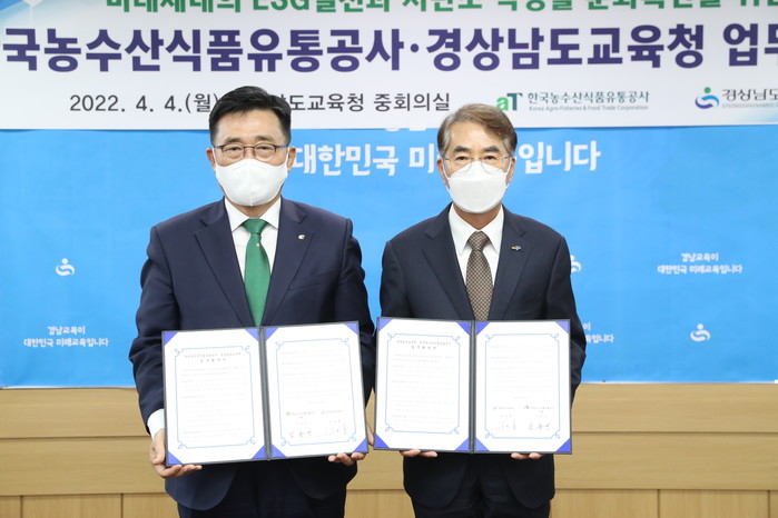 경상남도교육청(교육감 박종훈)과 한국농수산식품유통공사(이하 aT)가 저탄소 식생활 문화 확산을 위해 손을 맞잡았다.