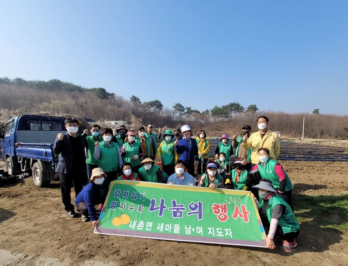 경기 포천시 내촌면 남·여새마을지도자협의회는 최근 내촌면 내4리 밭 300평에 지역내 불우이웃에게 전달할 ‘사랑의 감자심기 행사’를 실시했다. 오는 7월 초에 수확 예정인 감자는 지역내 노인정과 홀몸노인 등 어려운 이웃에게 전달할 예정이다. 사진은 이날 참여한 주민들이 기념촬영을 하는 모습. (사진제공=포천시청)