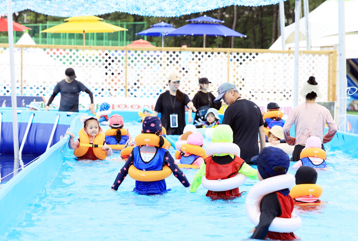특히 짜릿한 스릴을 자랑하는 100m 길이의 워터슬라이드에 올해는 에어바운스와 다람쥐통 물놀이 시설이 새롭게 추가됐다.