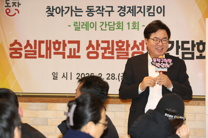 [시민일보 = 여영준 기자] 동작구(구청장 박일하)는 최근 숭실대 인근 상인들과 상권 활성화 방안을 주제로 ‘제1차 릴레이 경제 간담회’를 열어 의견 수렴 및 정책 홍보를 진행했다고 4일 밝혔다.