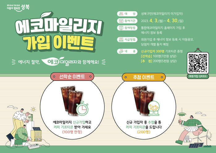 | ▲ 에코마일리지 가입 이벤트 안내문. (사진=성북구청 제공) |