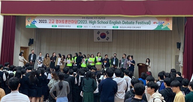 [창원=최성일 기자] 경상남도교육청(교육감 박종훈)은 11월 4일(토) 15개 학교 학생 176명과 원어민 영어 보조교사, 협력교사 35명이 참여하는 2023년 고교 영어 토론 한마당 행사를 창원중앙고등학교에서 열었다.
