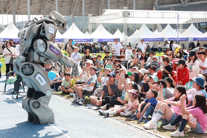 | ▲ 23~24일 제23회 용인 사이버 과학 축제에 등장한 로봇 타이탄을 보며 관람 |