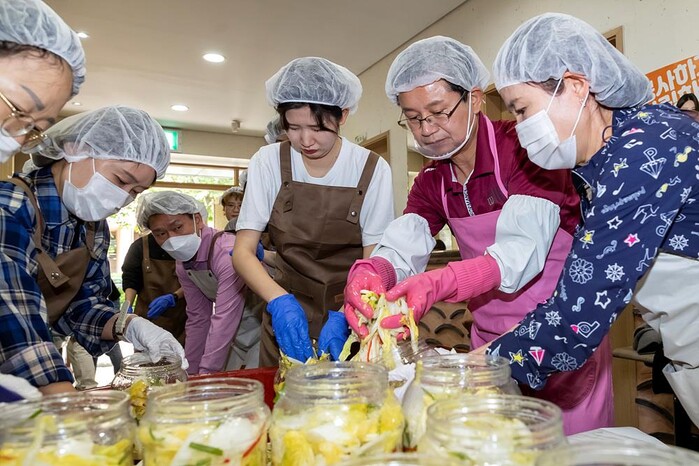 | ▲ 홀몸노인에게 전달할 물김치를 담그는 최호권 구청장의 모습. (사진=영등포구청 제공) |