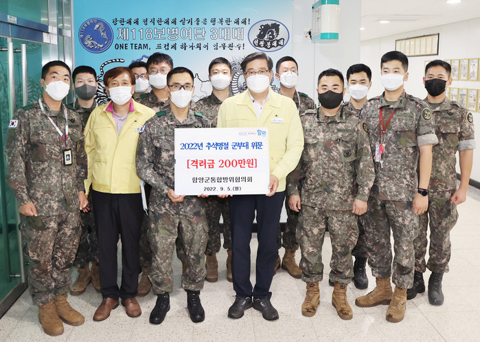 진병영 군수는 “군민들이 행복하고 편안하게 추석 명절을 보낼 수 있도록 맡은 바 임무에 최선을 다하는 군인·소방대원, 사회복무요원들에게 감사드린다.”며 “앞으로도 우리 군민의 생명과 안전을 굳건하게 지킨다는 자부심과 사명감을 가지고 항상 지역 통합방위에 힘써 달라.”고 당부했다.